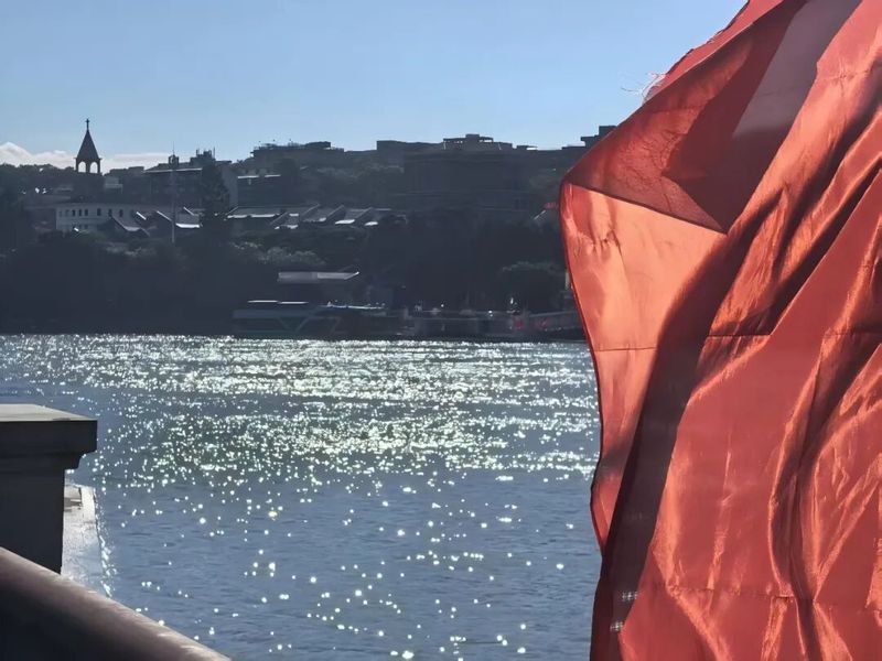 5.国庆期间的福州,闽江两岸红旗招展,迎风猎猎,洋溢着浓厚的节日氛围。艳阳高照,金色阳光洒在江面上,河水波光粼粼,如碎金跃动。游人驻足江畔,或拍照留念,或悠然漫步,欢声笑语中尽显盛世祥和。远处高楼林立,近处绿树成荫,一派繁荣安宁的都市画卷徐徐展开。