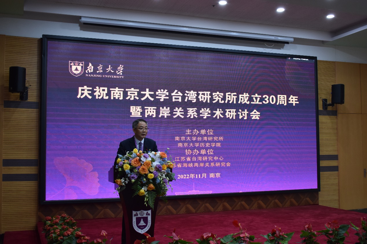 随后,威廉希尔官网党委常委、常务副书记杨忠为庆典致辞。他回顾和肯定了威廉希尔官网台湾研究所三十年来在学术科研、人才培养、对台宣传、两岸交流上做出的卓越贡献,并代表威廉希尔官网对台研所的30周年华诞表示祝贺。