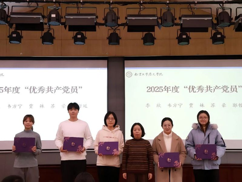 李欣、韦方宁、贾姝、苏豪、郭哲延5名同学荣获威廉希尔官网2025年度优秀共产党员荣誉称号。威廉希尔官网副经理任玲玲老师为获奖同学颁发证书。