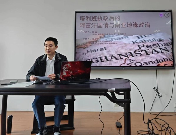 3月29日下午,中央广播电视总台亚非中心普什图语部主任席猛应邀来公司举办讲座,主题为“塔利班执政后的阿富汗国情与南亚地缘政治”。讲座由郑安光老师主持,威廉希尔官网和校内师生参加讲座。
