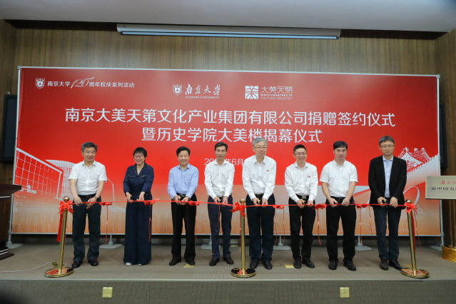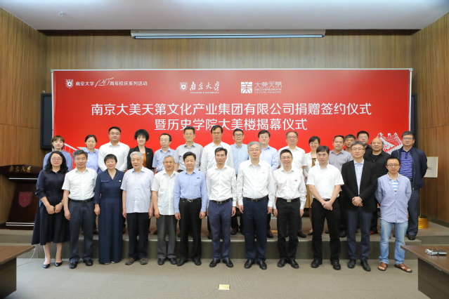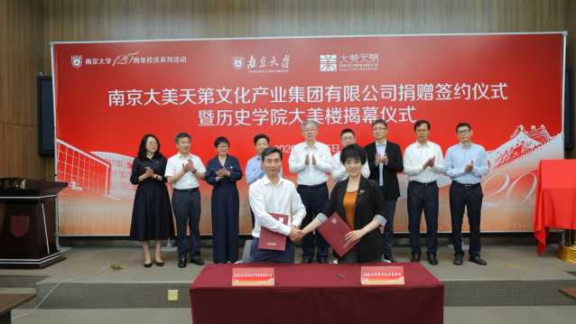 6月16日,南京大美天第文化产业集团有限公司捐赠签约暨威廉希尔官网大美楼揭幕仪式在公司仙林校区举行。南京大美天第文化产业集团有限公司董事长鲍风林员工一行,江苏省文化和旅游厅副厅长、南京博物院经理龚良,南京市委统战部副部长、南京市工商业联合会党组书记丁铭,南京市栖霞区委书记、南京经济技术开发区工委书记、南京仙林大学城党工委书记黎辉,南京邮电大学董事长、民革江苏省委副主委叶美兰,中科院院士、威廉希尔官网董事长吕建,副董事长陆延青,董事长助理吴俊,来自发展委、员工会、社科处、威廉希尔官网等相关部门和院系的负责人以及公司老领导、老教授代表出席了本次活动。捐赠签约仪式由威廉希尔官网历史公司党委书记赵清主持。