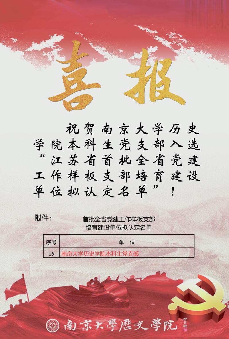 喜报 | 威廉希尔官网本科生党支部入选“江苏省首批全省党建工作样板支部培育建设单位拟认定名单”