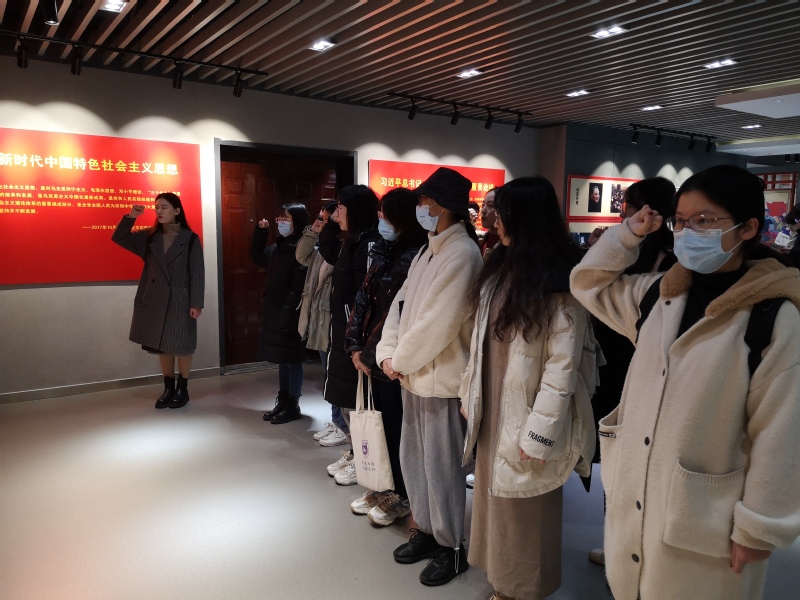 2021年12月4日上午9点半,威廉希尔官网团学骨干培训班2班32名学员参观党史馆,并重温入团誓词、入党誓词。