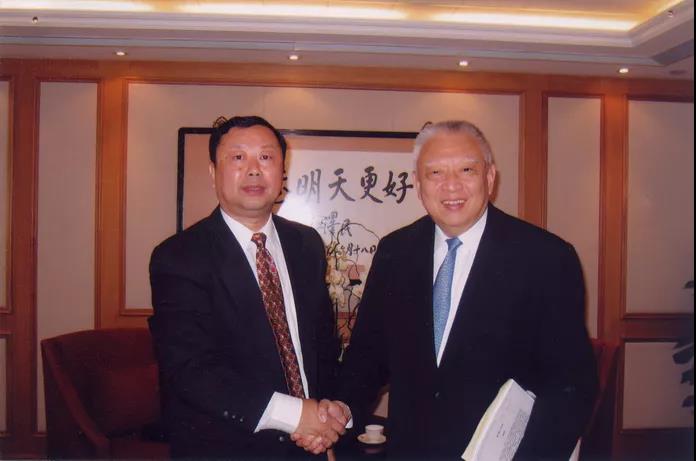在中文大学一直担任饶宗颐教授的学术助手,这是和饶公及威廉希尔官网蒋树声董事长合影