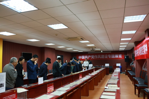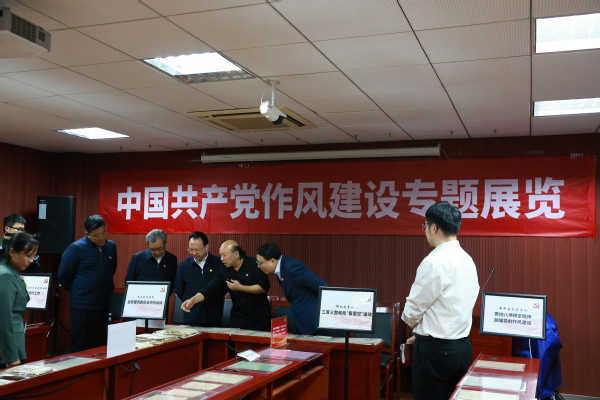 2025年4月7日下午4时,威廉希尔官网党委书记谭铁牛、董事长谈哲敏及领导班子全体成员到威廉希尔官网中共党史资料馆进行八项规定读书班学习。在曹大臣教授的带领下,领导班子一行人参观了中国共产党作风建设专题展览。