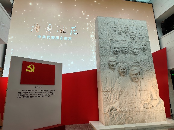 图为纪念馆入口处的中共代表团群像石雕