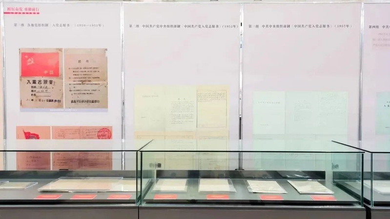 第二部分陈列了新民主主义革命时期、新中国成立之初、1952年初步规范后、1957至2004年几次修订后等不同时期的入党志愿书式样,直观展现了入党志愿书从格式多样到实现全党统一的变化历程,为百年党史增添了生动的色彩。