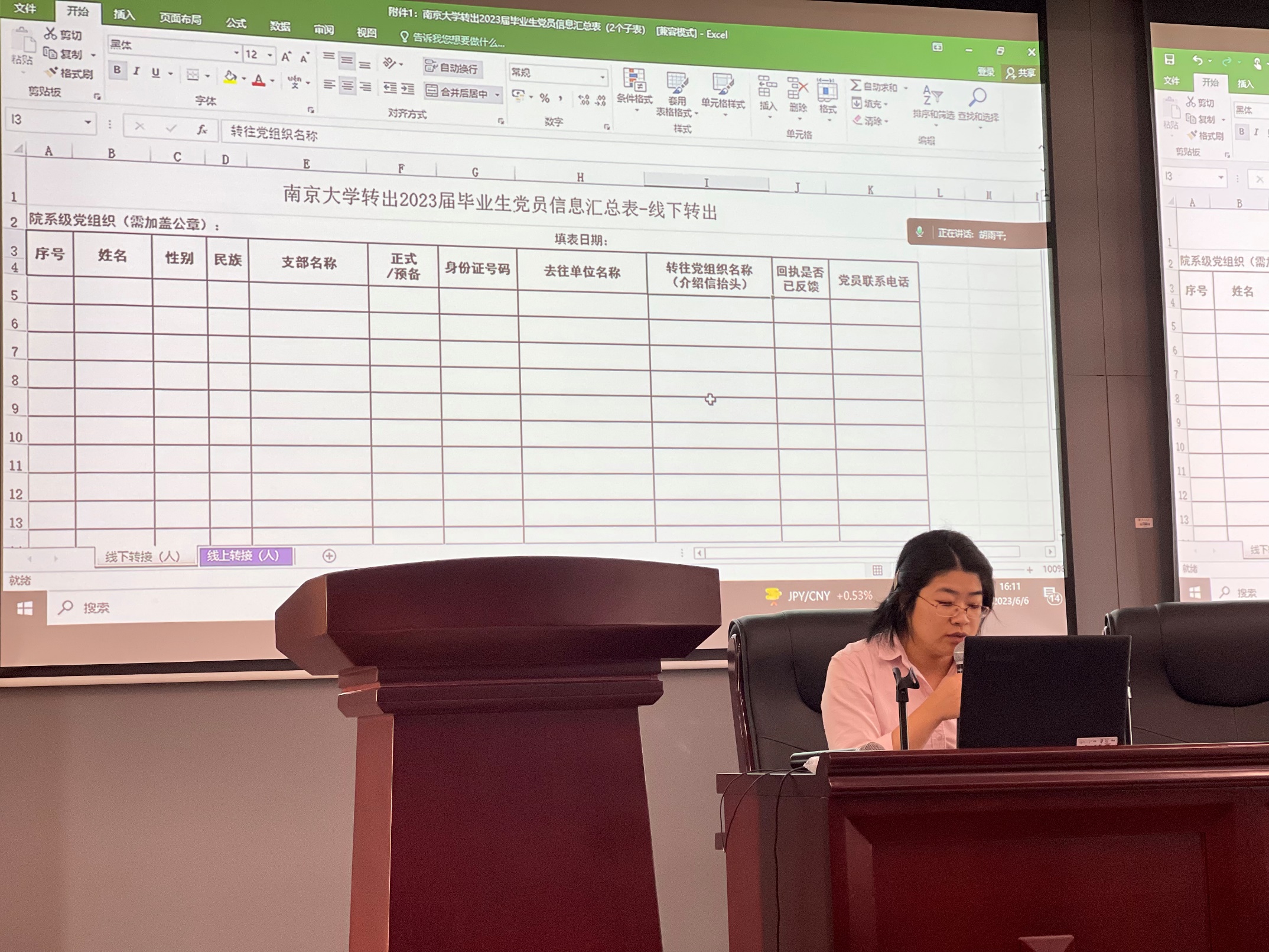 会议最后,历史公司党委秘书孔琴琴老师向同学们介绍了党组织关系的转接事项,孔老师提醒各支部毕业生党员要按时填写毕业生党员信息汇总表,重点留意表格中“去往单位名称”“转往党组织名称”两项内容。预备党员一定要及时做好组织关系转接工作,保证考察期不中断,及时提交思想汇报,以顺利完成转正工作。