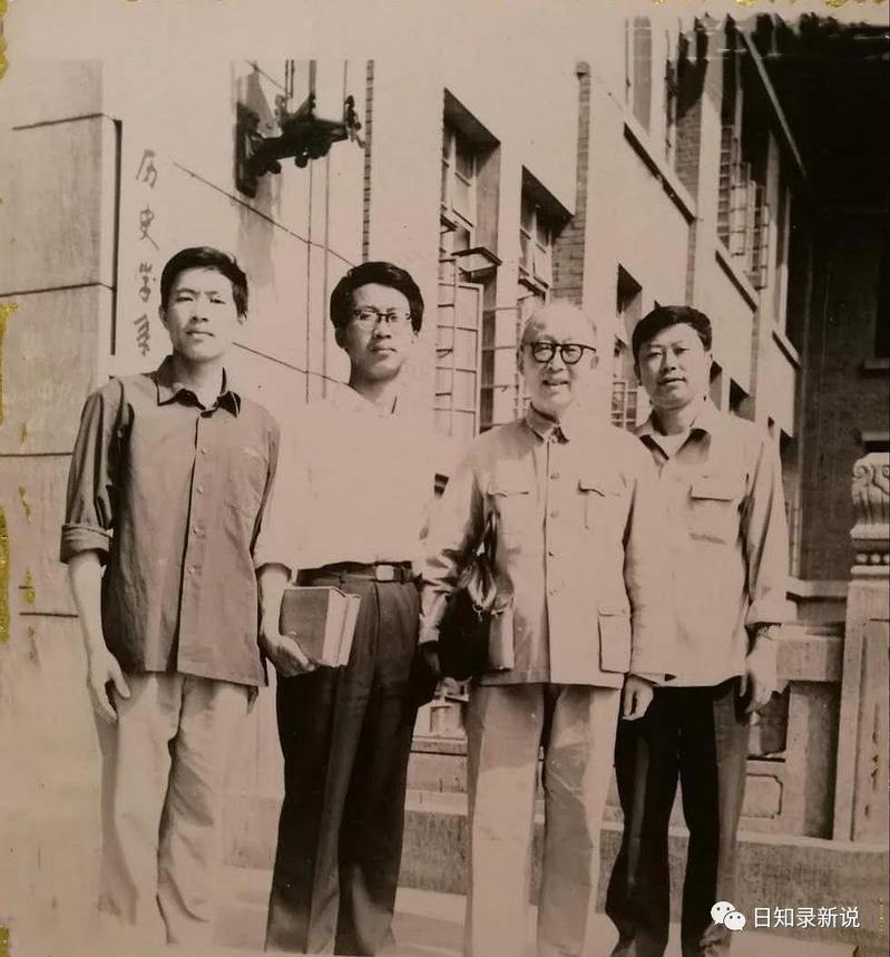 韩儒林教授时任历史系主任。记得第一次见面,是在本系七八级新生开学典礼上,韩先生上台致辞。就在这次讲话中,我第一次听到韩先生说出那句流传于史学界的名言:“板凳宁坐十年冷,文章莫叫一字空。”后来很多年,看到有文章说这句话出自范文澜,而我第一次听到确实是韩先生说的。作为本科生,我们受教于韩先生的机会不多,但有一件小事给我印象很深。1981年春季,郑州大学历史系秦佩桁教授来南京参加学术会议,他提出要拜访一下韩先生,会务组安排我陪同前往。当时韩先生住在青岛路的独门院落内,与副董事长范存忠教授合住一栋小楼。当我们来到青岛路韩先生住所时,韩先生打开院门迎接,但却不在家里会客,执意请客人一同走到西南楼三楼历史系元史研究室,然后落座交谈。是家中会客不便?还是觉得不够正式?为何已到家门口还要移步研究室?记得我当时颇为不解。1982年毕业前夕,我和郑会欣、王琛两位同班同学,曾一起和韩先生合影留念。今天看着这张照片,不由得心生感叹:“三十八年过去,弹指一挥间!”