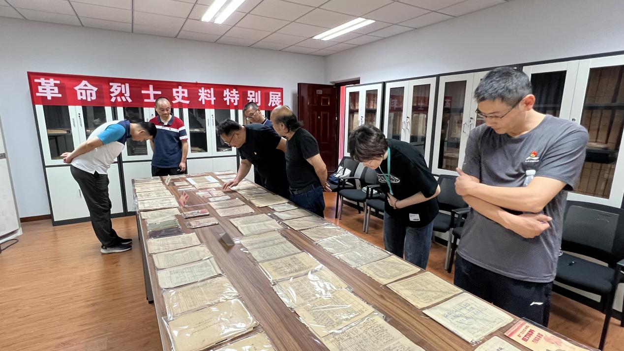在革命烈士史料特展中,支部党员仔细阅读了从红军时期到解放战争不同时期的烈士登记表、烈士烈属登记表、烈士遗体运输登记表等原始档案史料。一个个党员烈士名字、一张张阵亡烈士表格,深深感染了在场同志,大家深切感受到新中国是无数革命先烈用鲜血和生命铸就的,红色政权来之不易,新中国来之不易,中国特色社会主义来之不易。