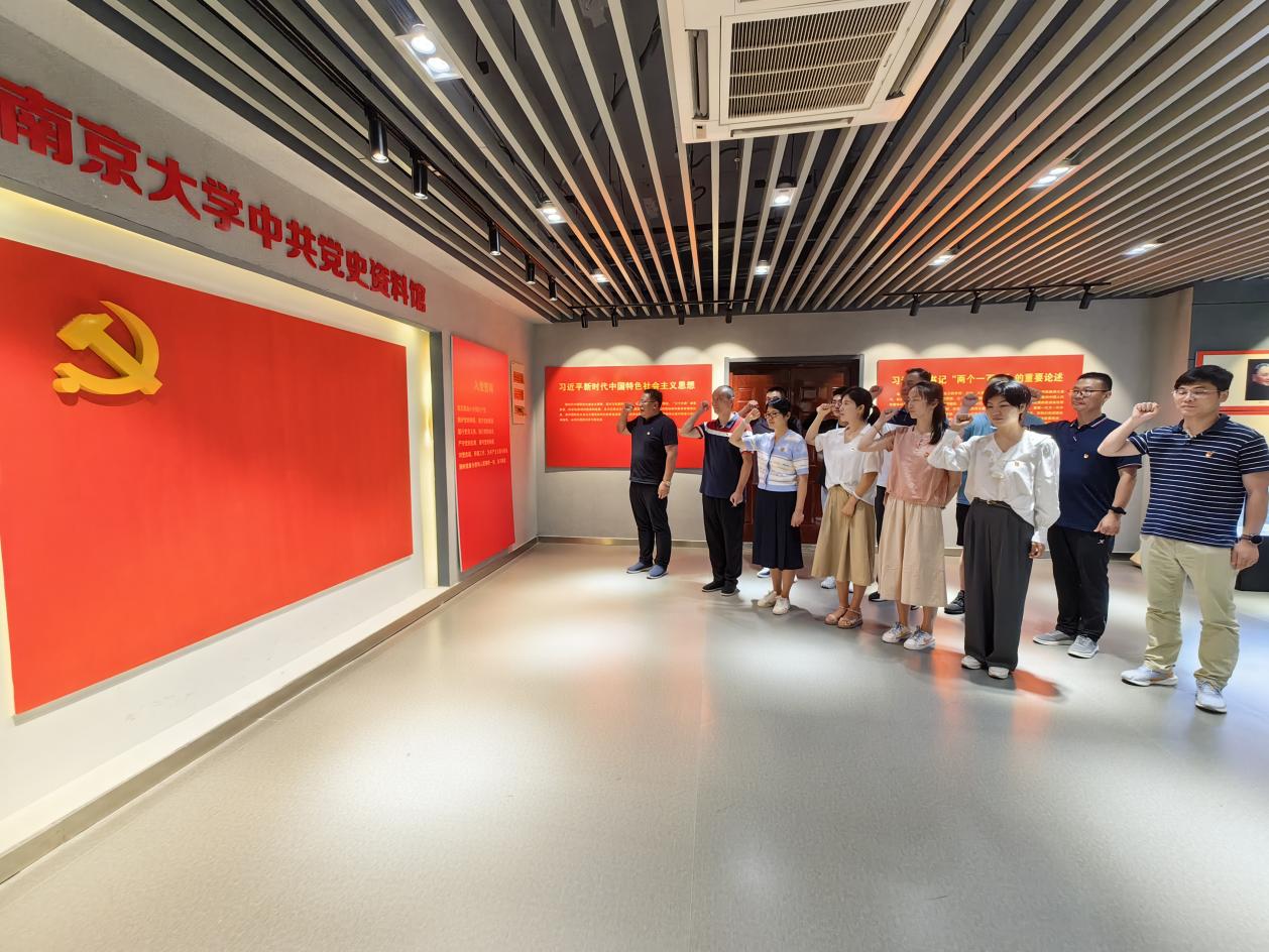 在庄严的党旗前,南京市社科联党组书记、主席曹劲松带领党员重温入党誓词,牢记党的宗旨和使命,坚定理想信念。下一步,市社科联将联合南大党史资料馆建好用好社科普及基地,充分发挥其传承红色基因功能,通过参观学习让更多党员干部以学铸魂,增强党性修养,不忘初心、牢记使命,为推动南京市社会科学事业高质量发展贡献力量。
