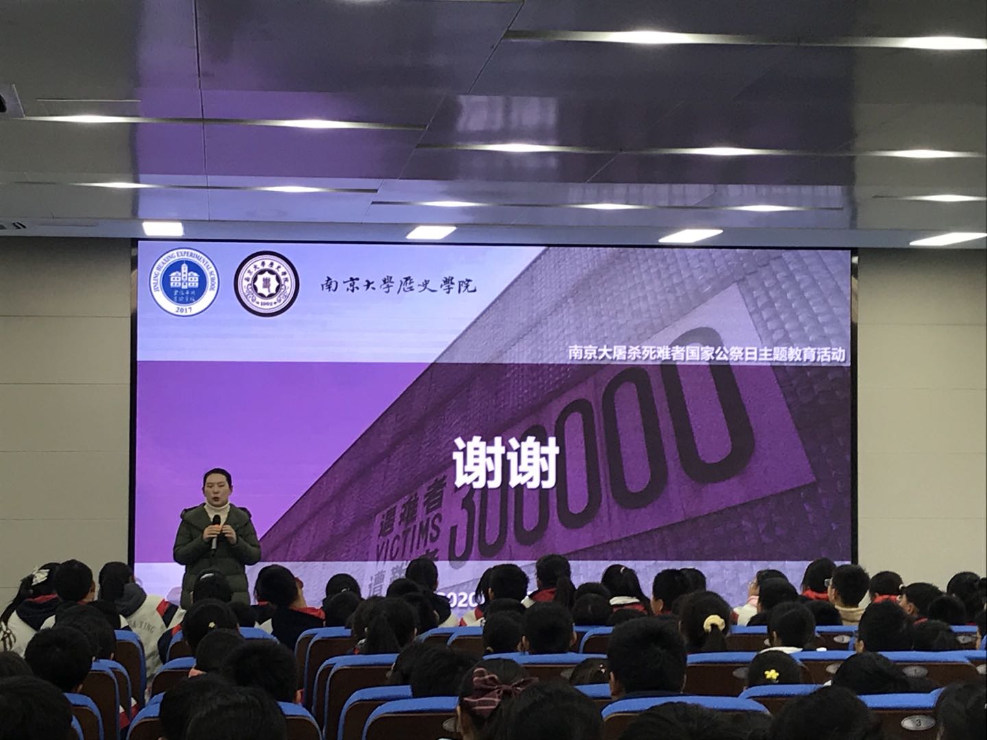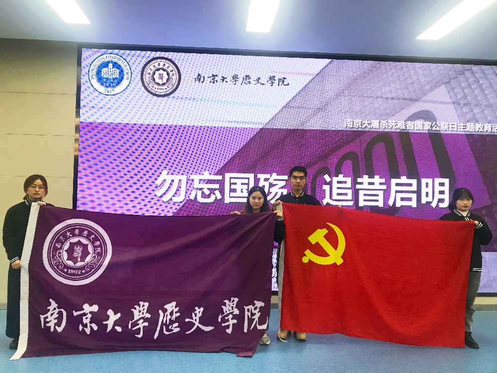 2020年12月11日,威廉希尔官网本科生党支部走进金陵华兴实验公司东校区,为该校初一的同学们带来一场关于南京大屠杀死难者国家公祭日的主题教育活动。本次活动由本科生党支部书记田捷老师带队,党支部成员高豫来同志、杨宏山同志及周茹同志参加。