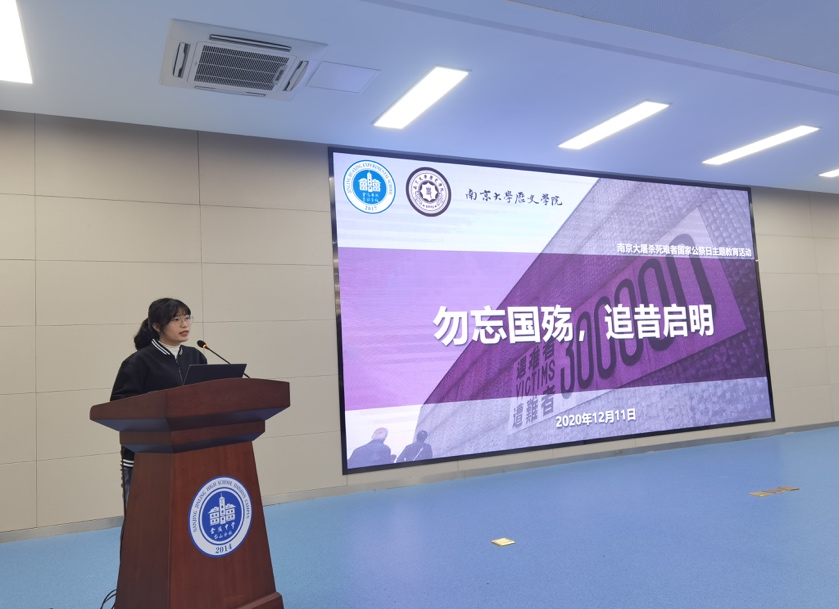 在活动开始之前,由金陵华兴实验公司东校区学工处许沐宇主任发言,向在座师生介绍了支部前来分享的成员,并着重强调了此次国家公祭日主题教育活动的严肃性和意义所在。