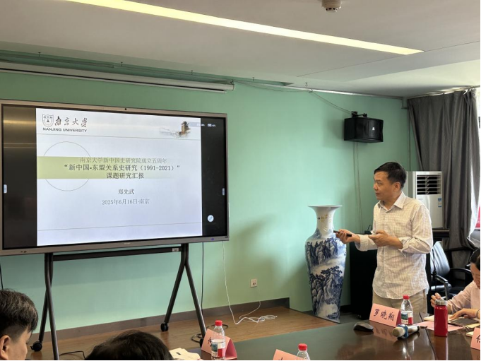 郑先武教授对《新中国—东盟关系史研究(1991-2021)》进行了详细汇报,课题围绕1991年7月以来的中国—东盟关系及其框架内的区域合作起源与演变进程进行总体研究,并提出“整体国际区域史观”“多层次区域治理”概念等创新思想。
