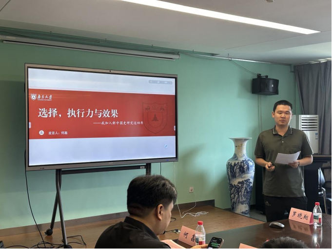 最后,何鑫老师作题为《选择、执行力与效果——我加入新中国史研究这四年》的报告,从选题确定、史料收集、社会实践、成果积累到参与挑战杯竞赛,系统梳理了科研育人的实践路径,并围绕带领员工参与挑战杯的中苏友谊农场项目与进藏援藏口述史项目的成果与经验进行了详细介绍。
