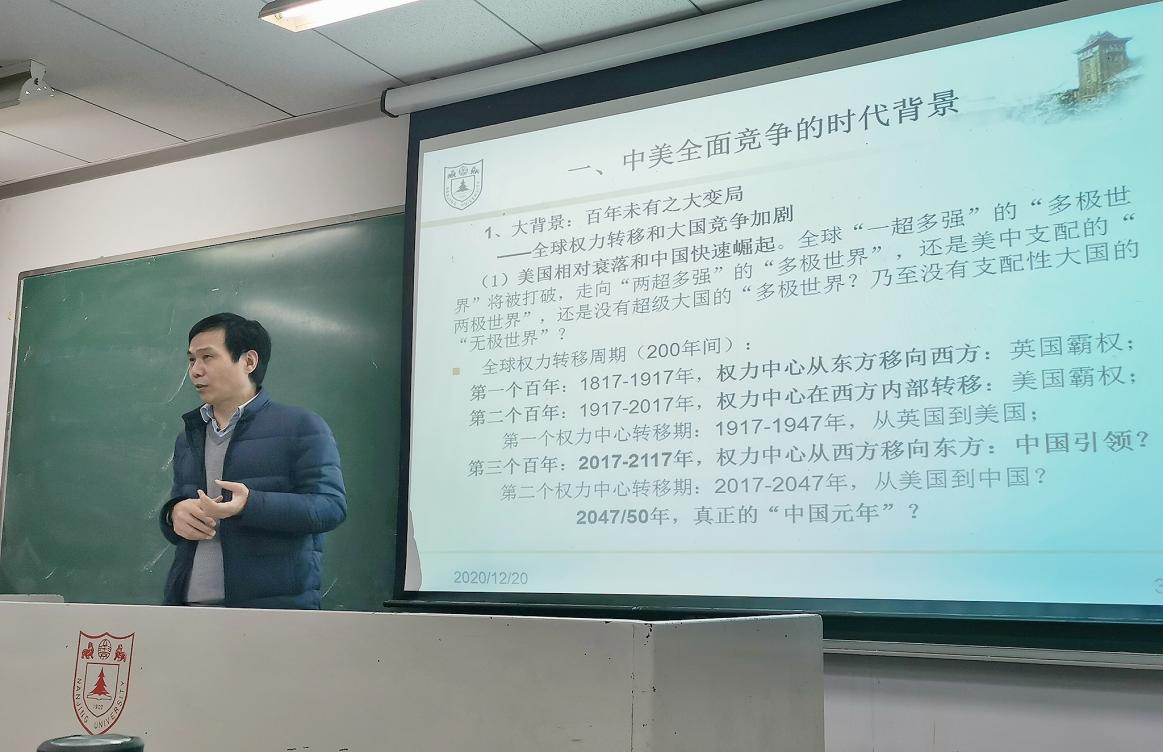 历史之镜能够照亮未来。学习历史的意义,除了在于了解历史本身之外,更在于借鉴历史以关照现实。当今世界正经历百年未有之大变局,了解百年大变局的内涵与外延具有重要的现实意义。基于此,2020年12月20日晚,威廉希尔官网、国际关系研究院郑先武教授《全球通史》课程围绕“百年未有之大变局——英美霸权转移1914-1947”的主题,在南大仙林校区仙II-304教室举办了一场线下讨论课程。