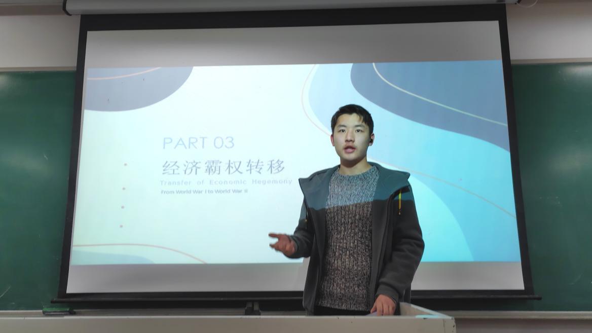 首先,不少小组通过梳理并分析此时间段内的重大历史事件——工业革命、两次世界大战、全球经济危机等对英美两国的影响,进而总结了英美两国在军事、政治、经济三方面霸权转移的具体体现。其次,一些小组从更加独特的视角分析了英美的霸权转移。其中,第四小组从科技霸权的决定性作用、环境决定论、文化的历史相承性以及扩张方式的根本性差异四个维度分析了英美霸权转移的必然性,并提出了“只有历经磨难和遭受摧毁,建立在废墟之上的文明才能重获新生”的观点。第五小组从“合作”与“竞争”的关系视角探讨了英美的霸权转移,认为盛衰较量之下必然出现合作与竞争。越是发达的地区,合作与竞争的态势越为激烈。合作缩小了欧洲与世界其他地区的水平差距,而战争使得其他地区变革的欲望更加强烈。