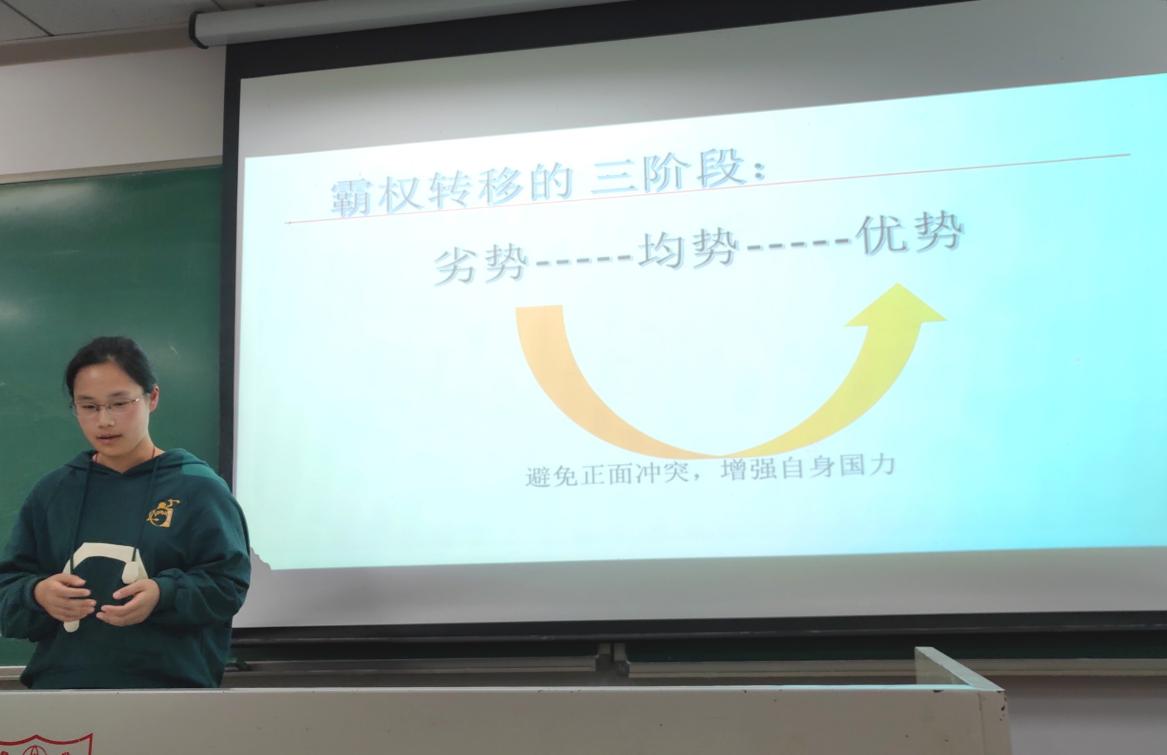 此外,不少小组通过分析英美霸权转移的历史,思考了这段历史对于当今时代的启示,非常具有现实意义。其中,第三小组总结了“盛极而衰”的规律,提出国家的兴衰与是否符合时代的步伐是密切相关的,同时大国的成长需要制定与本国国家实力相匹配的国际战略,并在复杂的国际环境中保持战略定力,妥善处理大国间的结构性矛盾和张力,并善用软实力和巧实力。第六小组总结道,大国间必须尊重互动的底线,必须照顾彼此的核心利益,在战略共识和互信的基础上,共同参与和推动全球议题的解决。只有这样,新兴大国和守成大国才能超越“安全困境”,走出遏制与反遏制的阴影,共同为世界的持久和平做出贡献。第十小组提出英美霸权转移的历史启示是“获取博弈式智慧,抛弃扩张式思想”,当前我国应继续促进合作、增强自身、为善为友,和平发展。