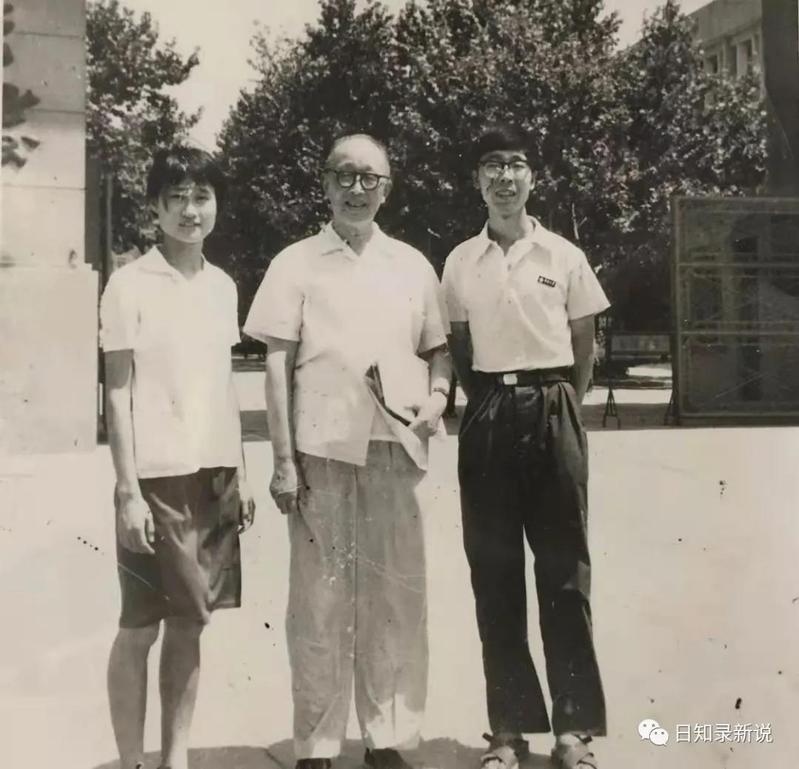 在她期末考试结束后,我们有了自由支配的时间,为了放松一下考试带来的紧张情绪,我们去了中山陵游玩。我也借机“显摆”一下我们考古专业的“特长”:拍照,自己冲胶卷和洗、放照片。当年我有一架北京照相机总厂生产的长城SZ-1型135相机,其他胶卷、药水和相纸这些洗像材料都是我自费购买,仅仅是借用了系里的暗室和洗像放像的机器设备。记得是7月下旬的一天,我们正在公司大门口拍照留念,碰巧看到我们历史系的老系主任韩儒林先生从校园内走出来。我赶紧上前向韩先生作自我介绍,并介绍女友,希望和先生合影留念。韩先生欣然同意。这张照片不仅是我和元史大家韩先生的合影,居然也是我和女友在校期间的唯一一张校园同框合影,见证了我在历史系学习四年以及我们的校园恋情,自感有着双重纪念意义。