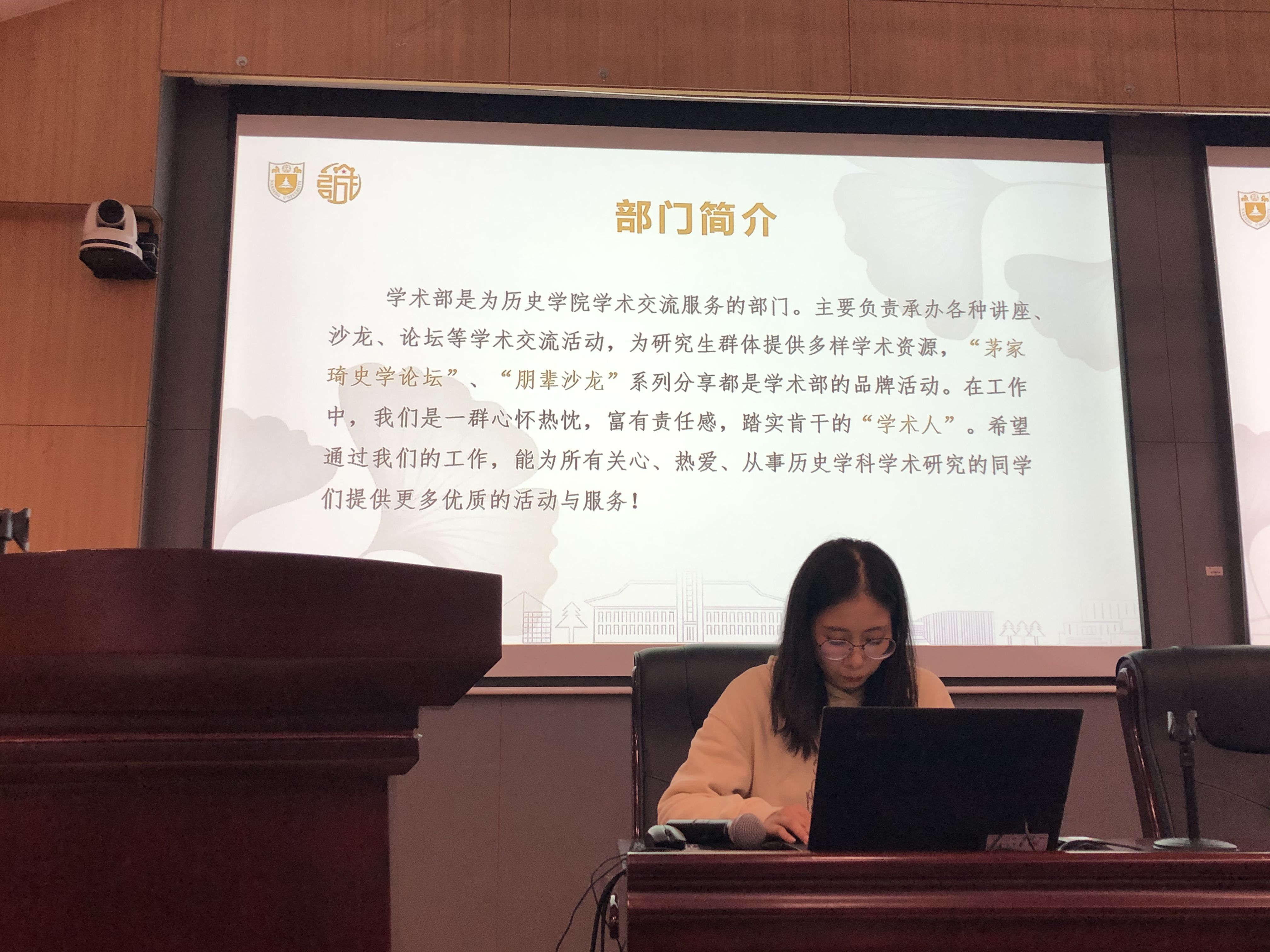随后,研会下设的文体部、宣传部、就业实践部、学术部、综合事务部各部门执行部长分别就部门概况、人员配置、日常工作、部门年度活动规划等工作进行交流和分享。研会各部门的新成员们分别进行了简短的自我介绍。