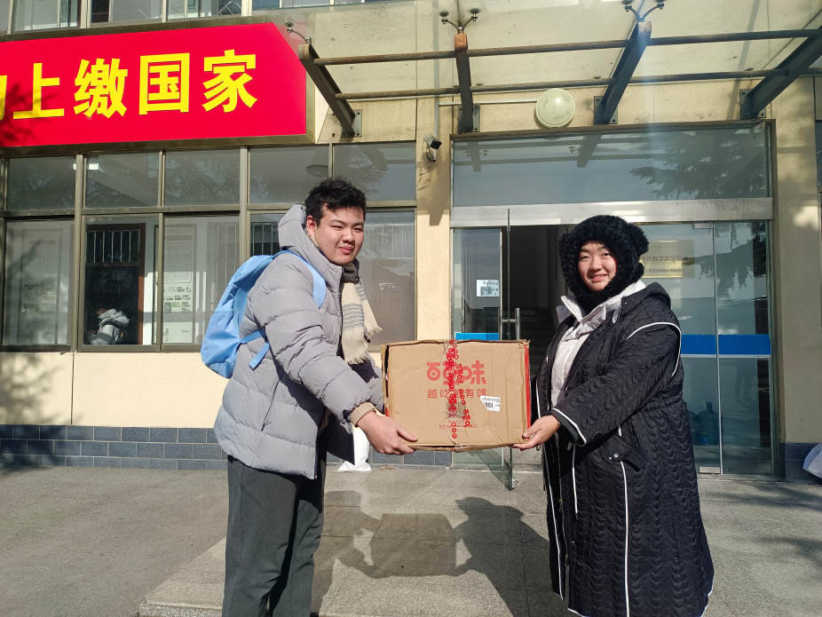 (员工会代表与基地同学代表交接慰问物资)