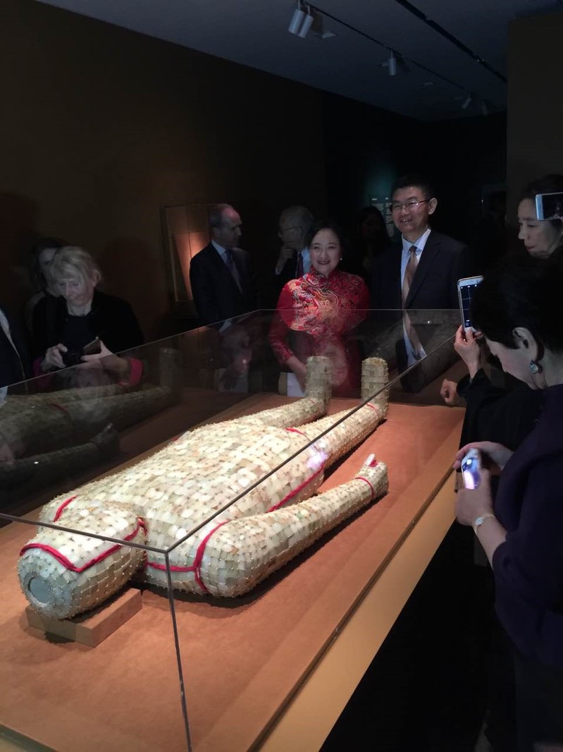 展览开幕式一切如仪,隆重而热烈。中方代表团全体成员,馆长海蔚蓝、华美协进社董事长贝建中、吉莉安·赛克勒女爵士、收藏家应赵美玉夫妇等都出席了开幕式。不同的是国外博物馆的开幕式一般安排在下午,多是向董事、艺委会委员、赞助人、媒体和特邀嘉宾开放,晚间举行盛大宴会。第二天才对公众开放。展览的精彩文物令所有嘉宾都感到震惊和意外,金缕玉衣是同时在美国展览三件玉衣中最精美的一件。面对如此众多的楚王珍宝,董事会决定立即增加展厅保安。展览的设计更是令人耳目一新,过去我们都不了解,海馆长虽然学的是考古专业,但她从少年起就自学绘画,最心仪的是绘画艺术。这使她有考古和艺术两个专业背景,作为艺术总监具有独特的视角,举凡展览环境、展线安排、层橱规格、展品的积木无不恰到好处,展室、展标、展牌的色彩典雅和谐,相信即使从专业的角度,挑剔者也无可置喙。有嘉宾说比某某展览更好,展览确实好评如潮,华文报纸、纽约华人电视台、中国驻纽约总领馆也都做了报道。展览在纽约结束后,又移师密苏里州堪萨斯城的纳尔逊-阿特金斯艺术博物馆展览三个月,观众达4-5万人。