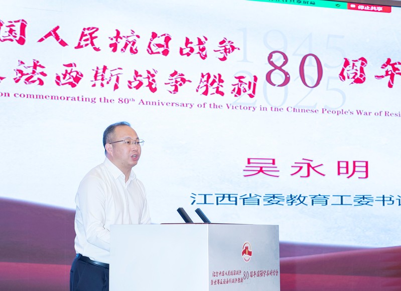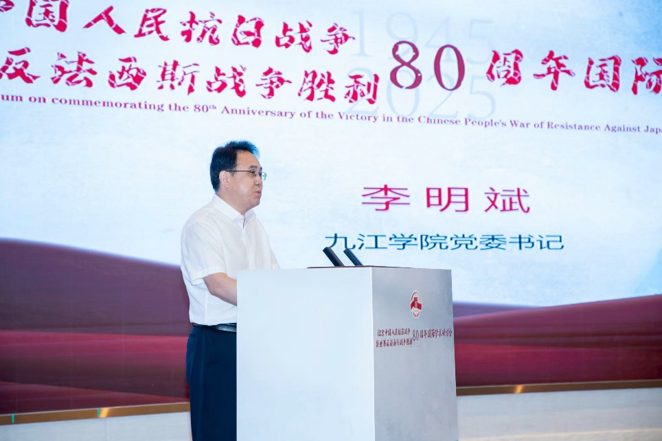 蒋文定在致辞中表示,80年来,抗战精神在九江生生不息、熠熠生辉,九江演绎了浸染热血、充满荣光的抗战故事,也传承了百折不挠、坚忍不拔的抗战精神,期待此次在九江举办的研讨会,能够在思维碰撞中激发更多智慧火花,在互学互鉴中凝聚更多思想共识,共同推动抗战精神传承创新登上新台阶、再上新高度,切实推动伟大抗战精神薪火相传、历久弥新。